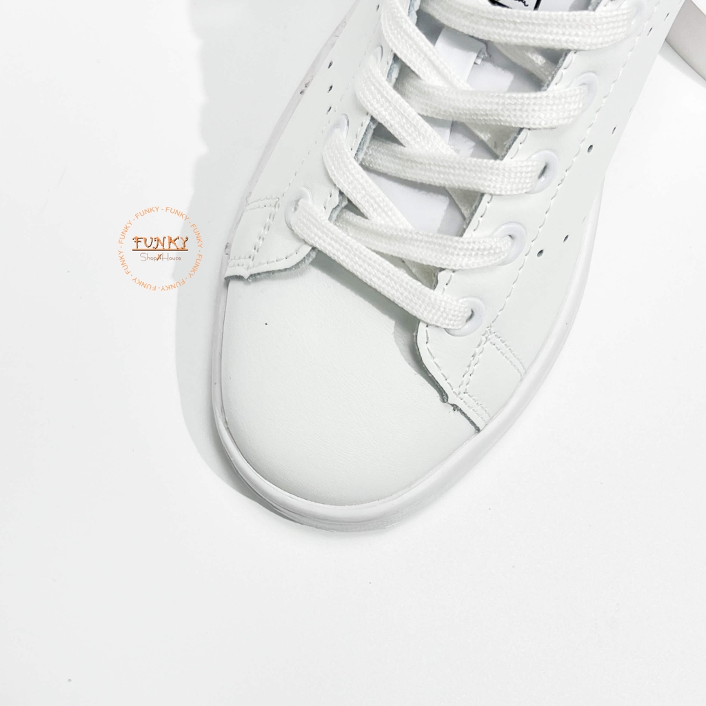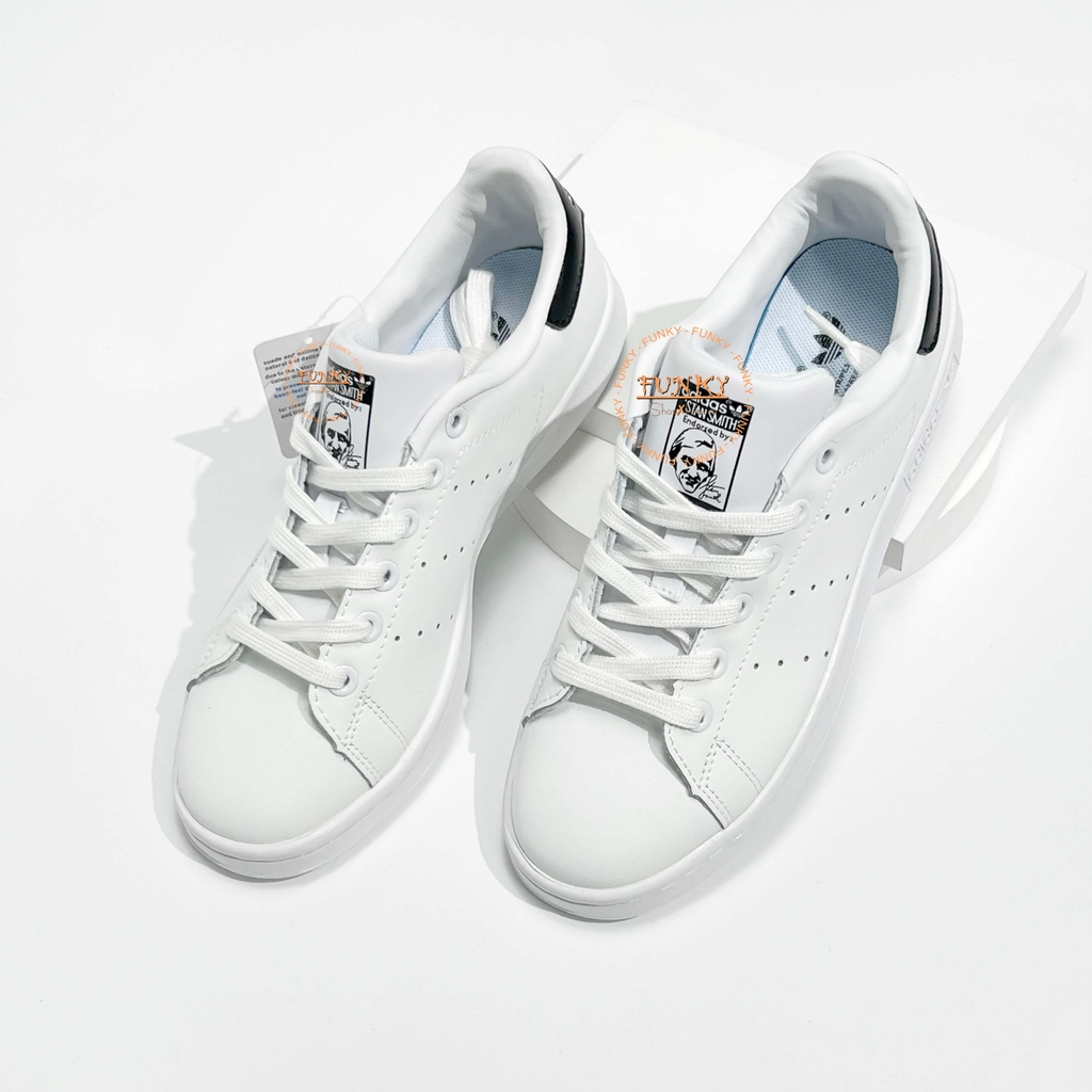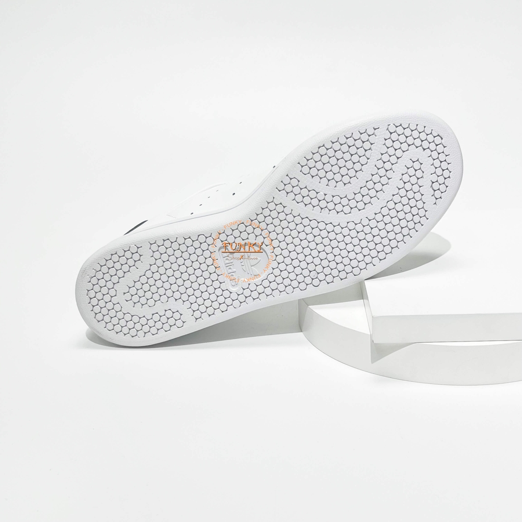 Giày Stan Smith nổi tiếng với thiết kế đơn giản, thanh lịch và đầy tinh tế. Chúng có phần trên được làm từ da trắng bóng loáng, với thiết kế hợp tác với tay vợt người Mỹ Stan Smith, người đã giành vô địch tại Wimbledon vào năm 1972. Đôi giày này thể hiện sự tối giản và sáng sủa, tạo nên vẻ trẻ trung và phù hợp với nhiều phong cách thời trang.